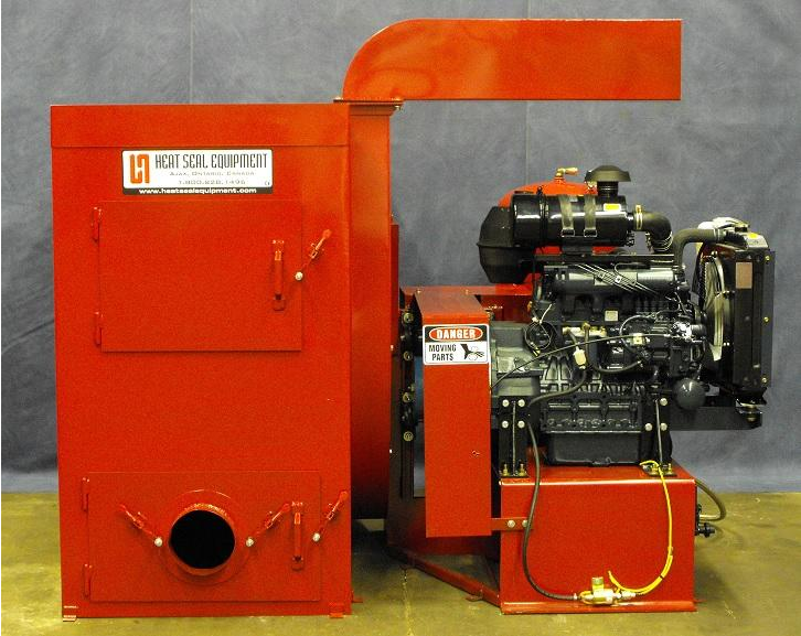 Has been used with 450' hose. Dynamic suction created by our 39" aluminum and steel, high vacuum fan, made by Heat Seal.