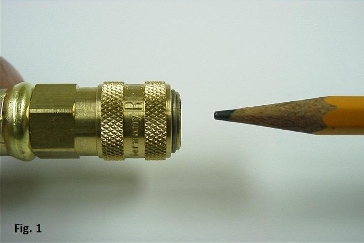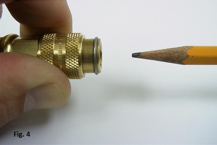 - Take a pencil and depress the plunger inside the fitting about 1/4" and hold it there. (Fig. 2)