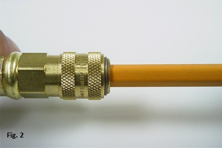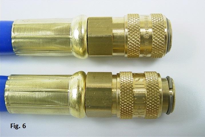 - Another way of telling whether the quick disconnect is locked is to compare the outer sleeve on an unlocked fitting. (Fig. 6) The outer sleeve on a locked fitting is more forward than the other fitting.