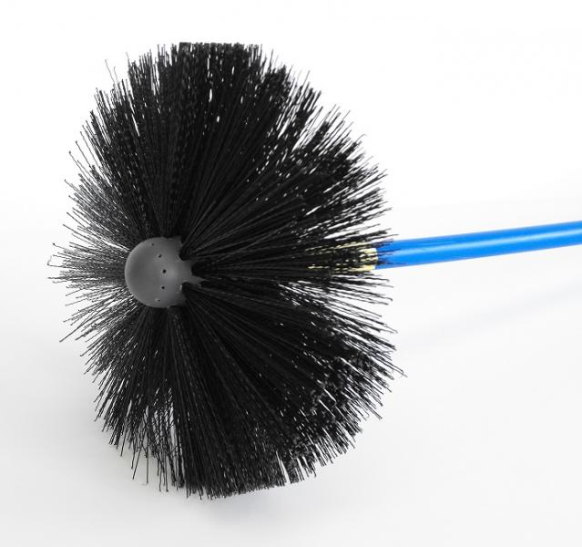 The 8.5" diameter bristles will scrub the walls of the duct work and will blast the debris with air jets all at the same time.