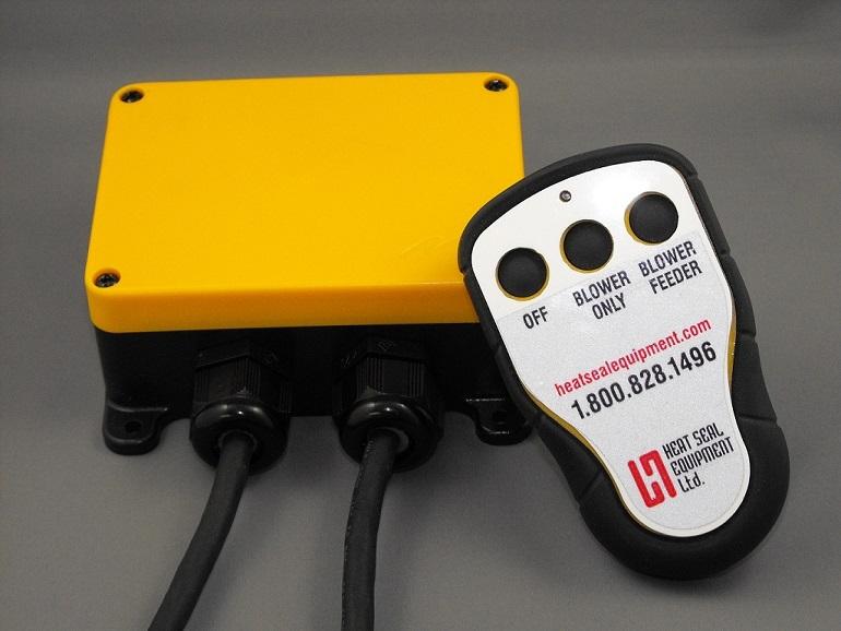 - Hand sized, 3 button remote. Permits Blower Only, Blower and Feeder operations and Off.